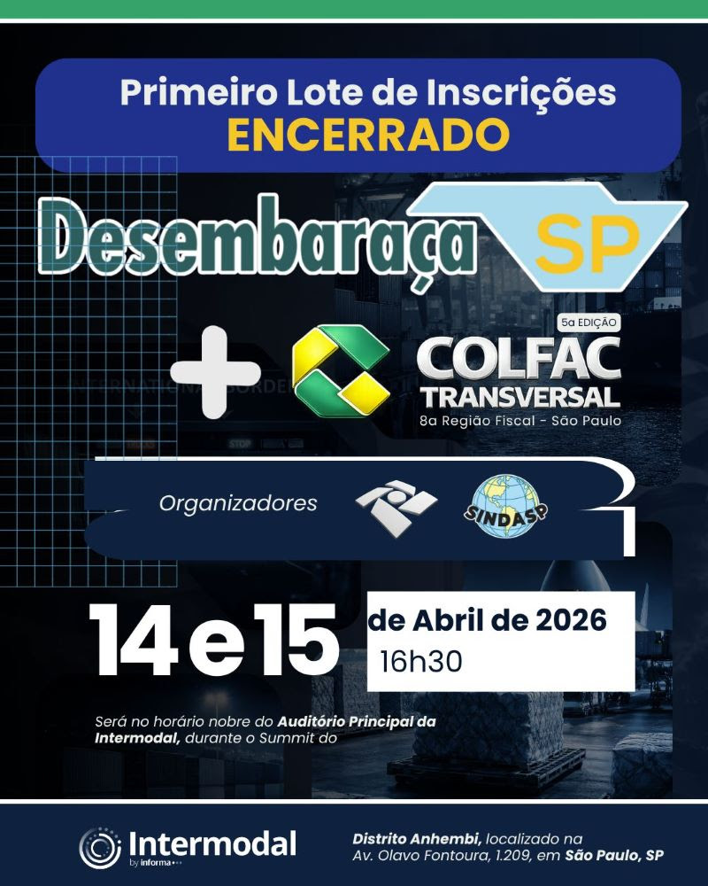 O Desembaraça São Paulo – que será realizado nos dias 14 e 15 de abril e que terá a Colfac Transversal em seu primeiro dia de debates – informa que segue com ampla mobilização e forte interesse do público. O evento será no Auditório Principal da Intermodal, no Distrito Anhembi em São Paulo, sempre com início às 16:30h.