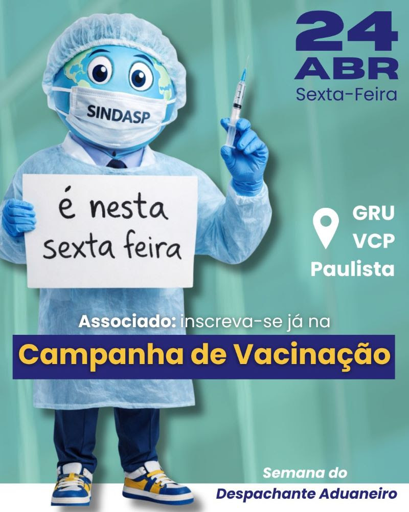 UH nº 099/26 – Falta 01 dia para a “Campanha de Vacinação” gratuita para os Associados, por ocasião do “Dia do Despachante Aduaneiro”. Agende agora!