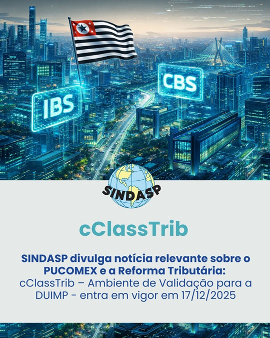 SINDASP divulga notícia relevante sobre o PUCOMEX e a Reforma Tributária: cClassTrib – Ambiente de Validação para a DUIMP